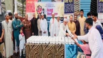 সিলেট নগরীর ব্যস্ততম এলাকা রিকাবীবাজার ও লামাবাজারে পবিত্র মাহে রমজান উপলক্ষে দায়িত্ব পালনরত ট্রাফিক সার্জেন্ট ও পুলিশ সদস্যদের মধ্যে ইফতার